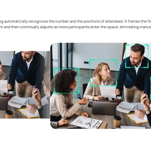 UVC40 E2 hỗ trợ Auto Framing và Speaker Tracking, tự động điều chỉnh khung hình theo số lượng người và vị trí đang nói, mang lại trải nghiệm tự nhiên và chuyên nghiệp.
