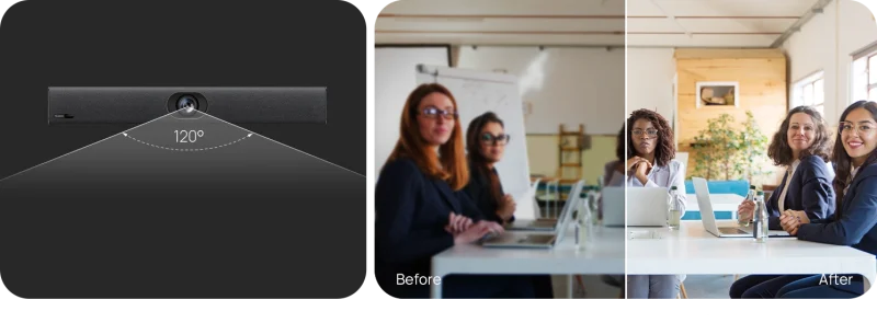 Camera độ phân giải Full HD, với góc nhìn rộng cho phép bao quát toàn bộ phòng họp, đảm bảo tất cả người tham gia đều được hiển thị rõ ràng.